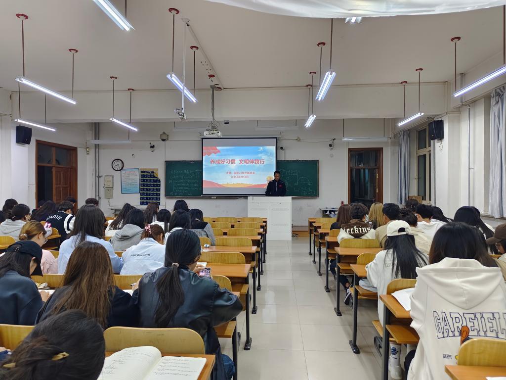 輔導員以“文明伴我行”為主題,通過列舉校園不文明寢室案例和分析學生在個人寢室衛生、寢室文化氛圍等方面存在的問題來讓學生更好地了解寢室衛生環境和寢室文化氛圍對大學生身心發展的重要影響,并通過列舉“‘經法男人幫’,相呼共奮進”的例子來引導學生提高文明素養,與寢室同學在學習和生活中相互激勵、共同進步。最后,輔導員表示,希望同學們在細節處約束自身行為,用實際行動踐行文明行為,在規范中創造價值,爭做新時代文明大學生。