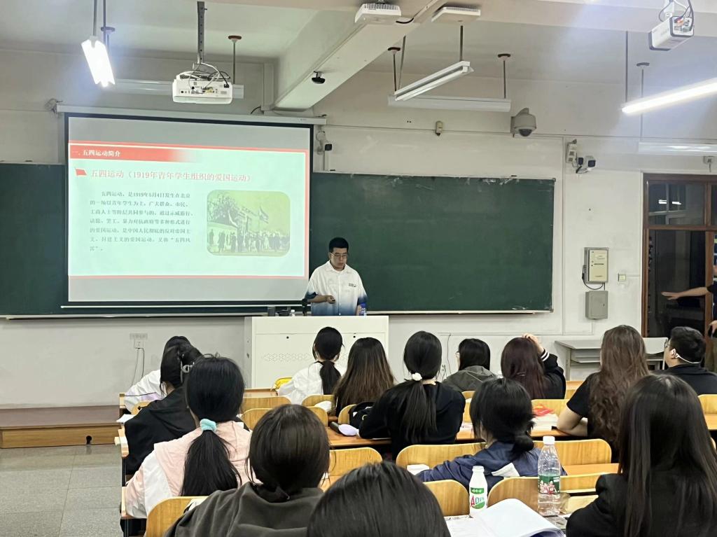 會上,輔導員以“傳承五四精神 凝聚青春力量”為主題,從“五四運動”的歷史背景及意義講起,帶領學生共同回望歷史,在一段段感人的故事中、在一份份炙熱的情感中了解“五四運動”的發展歷程,感悟革命先輩的初心使命和家國情懷。輔導員以各行各業的當代杰出青年為例來向同學們深入講解五四精神的內涵、五四精神的當代體現以及如何傳承五四精神等方面的內容,并帶領學生學習習近平總書記對青年的寄語,引導學生不辜負總書記的殷切期盼,大力弘揚和踐行五四精神,以奮斗姿態激揚青春,堅定信念、敏于求知,把個人的理想追求融入黨和國家事業中去,不負韶華、不負時代、不負人民。