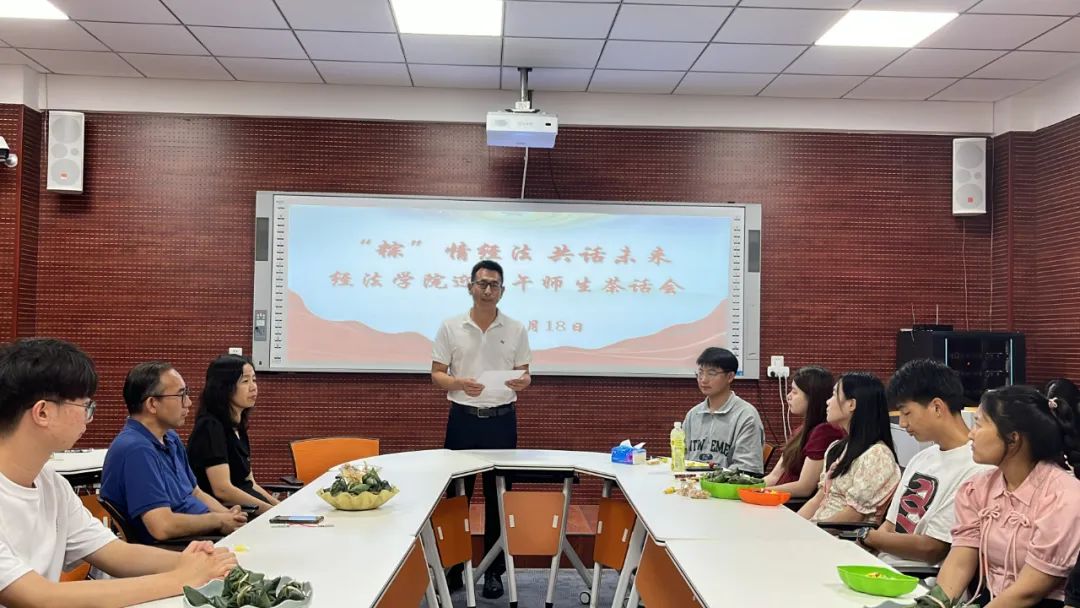 6月18日,經法學院于博識樓A407召開“‘粽’情經法 共話未來”迎端午師生茶話會,本次活動由經法學院學辦主任齊艷萍主持,學院黨委書記趙智博、黨委副書記張國華、團委副書記張鵬飛、畢業生代表、藏族學生代表以及各班級學生骨干共約50人參加了活動。