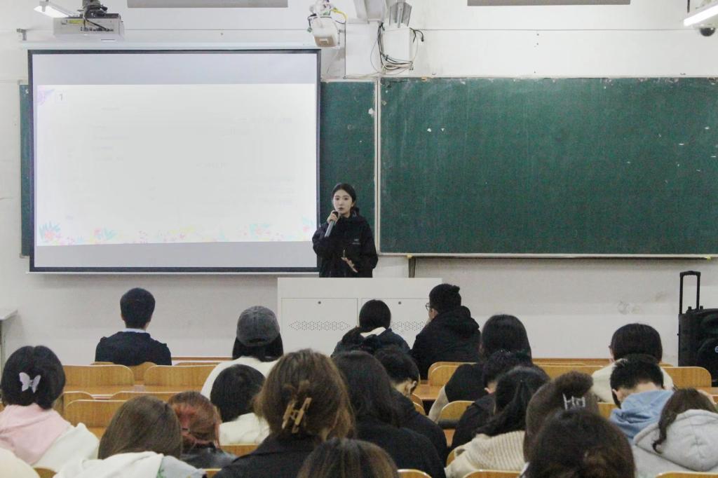 法碩20沈逍、法學19馬思琪則分享了自己的考公經驗。兩名同學從前期準備、言語理解、判斷推理以及面試技巧幾個方面向大家進行了詳細的介紹,以“關關難過關關過,前路漫漫亦燦燦”引出在備考過程中要始終保持堅持不懈的態度和積極平穩的心態,他們鼓勵學弟學妹要勇于面對各種挑戰,用行動與汗水戰勝一切困難,前方之路必定光明璀璨。