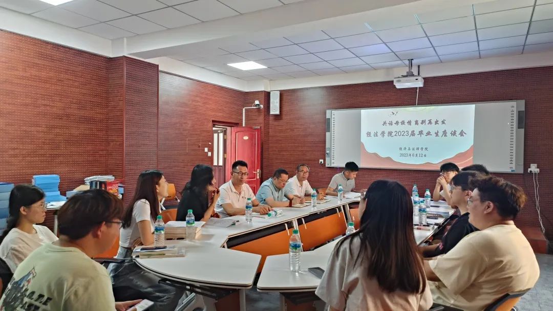 6月12日下午,經法學院于博識樓A407召開2023屆畢業生座談會暨圖書捐贈儀式。經法學院黨委書記趙智博、院長郭浩淼、黨委副書記張國華、學辦主任齊艷萍、團委副書記張鵬飛以及2023屆畢業生代表出席本次活動。