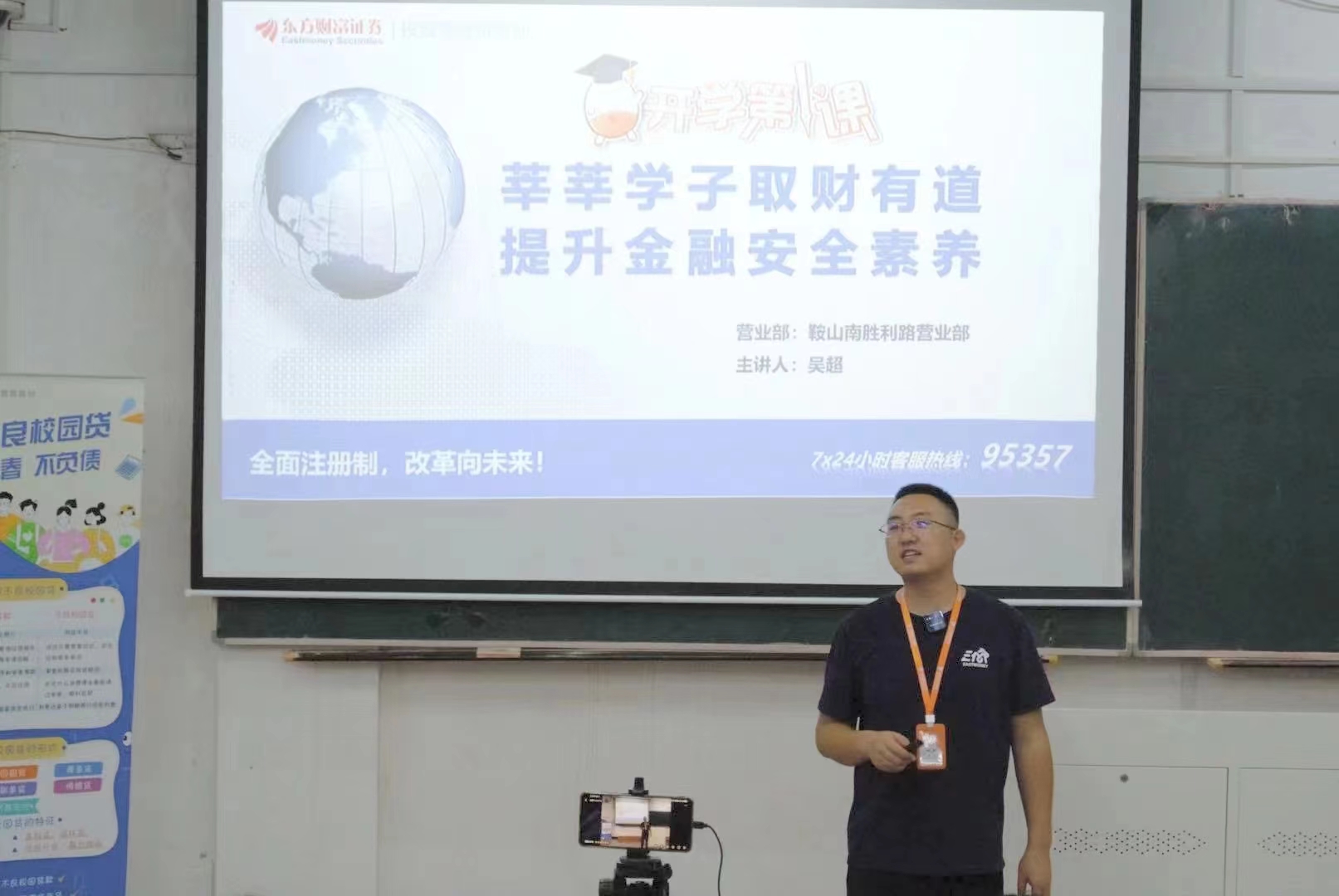 為增進(jìn)學(xué)生對金融行業(yè)的了解,警惕不良校園貸,防范電信詐騙,9月24日,經(jīng)法學(xué)院邀請東方財(cái)富證券鞍山營業(yè)部在博學(xué)樓C202開展“莘莘學(xué)子取財(cái)有道,提升金融安全素養(yǎng)”宣講會。經(jīng)法學(xué)院黨委書記趙智博、團(tuán)委副書記張鵬飛以及2023級全體新生參加了本次宣講會。