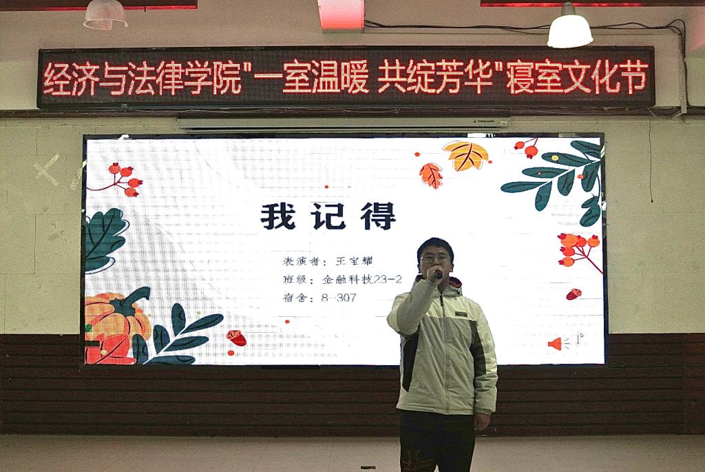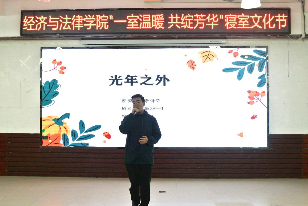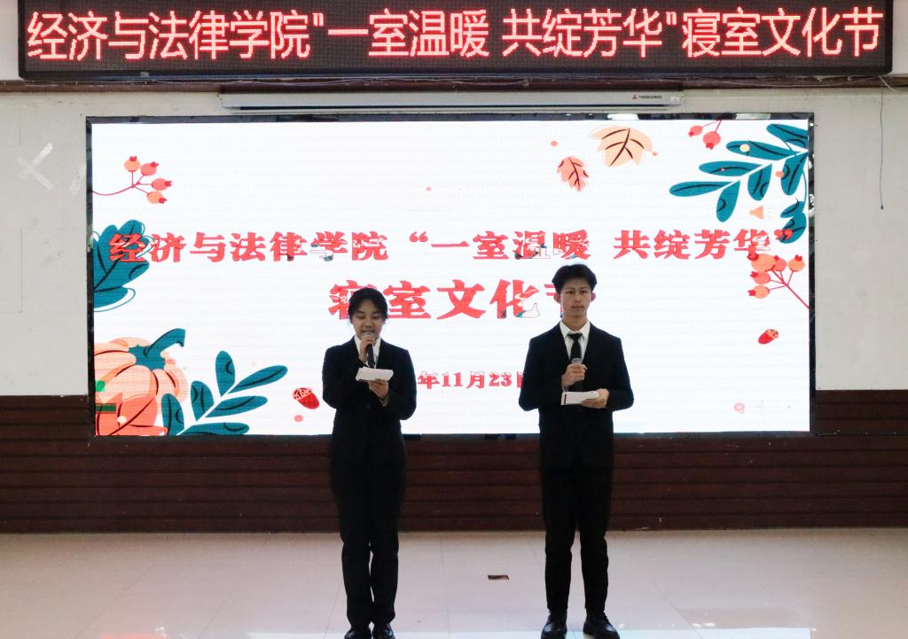 11月23日晚,經(jīng)法學(xué)院于明德樓大學(xué)生活動中心舉辦“一室溫暖,共綻芳華”主題寢室文化節(jié)。經(jīng)法學(xué)院黨委書記趙智博、團(tuán)委副書記張鵬飛、團(tuán)學(xué)骨干以及2023級新生共計200余人參加了本次活動。