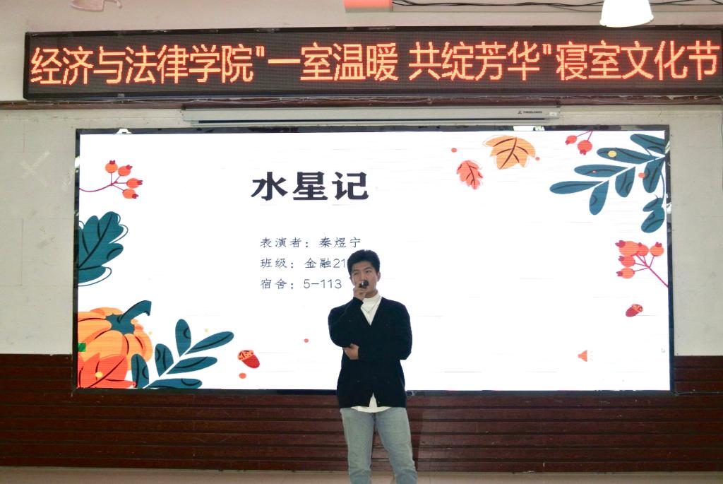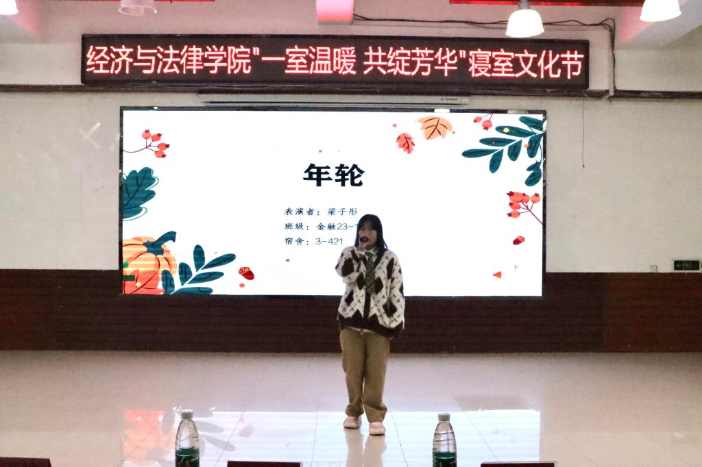 活動中,Vshow舞團(tuán)開場的精彩表演點燃了觀眾的熱情,現(xiàn)場氣氛瞬間升溫,活動正式拉開序幕。本次寢室文化節(jié)共分為“寢室vlog大賽”“才藝大賽”和“疊被子大賽”三個環(huán)節(jié)。隨著全場熱烈的掌聲,“寢室vlog大賽”將各參賽寢室成員們精彩紛呈的寢室生活呈現(xiàn)在觀眾眼前。選手們通過照片、視頻、采訪等各種各樣的形式記錄了寢室成員之間的點點滴滴,展現(xiàn)了寢室生活的溫馨日常以及各寢室成員們獨特的閃光點。“才藝大賽”上,選手們各顯神通,給觀眾帶來了一場視聽盛宴。小品《勇闖301》以詼諧的劇情、滑稽的動作讓現(xiàn)場笑聲不斷;歌曲《年輪》、詩朗誦《面朝大海,春暖花開》、舞蹈串燒等表演以充沛飽滿的情感詮釋了經(jīng)法學(xué)子們積極向上、意氣飛揚的寢室風(fēng)采,體現(xiàn)了寢室成員們熱情奔放的精神面貌,贏得了在場老師和同學(xué)們的陣陣掌聲。修明武術(shù)協(xié)會和金融21班秦煜寧的串場表演以及“抱團(tuán)游戲”將氣氛再次推向高潮,現(xiàn)場歡呼喝彩聲不斷。“疊被子大賽”環(huán)節(jié)中,隨著主持人一聲令下,參賽同學(xué)迅速進(jìn)入狀態(tài),即便兩位主持人不斷提問干擾,選手們依然細(xì)致認(rèn)真地整理被子,現(xiàn)場氣氛熱烈,歡呼不斷。兩分鐘后,一塊塊棱角分明的“豆腐塊"展現(xiàn)在觀眾面前,贏得了觀眾的熱烈掌聲。由韋敏玲、何運來、周思彤為大家?guī)淼奈璧复疅硌菥式^倫,令人印象深刻。