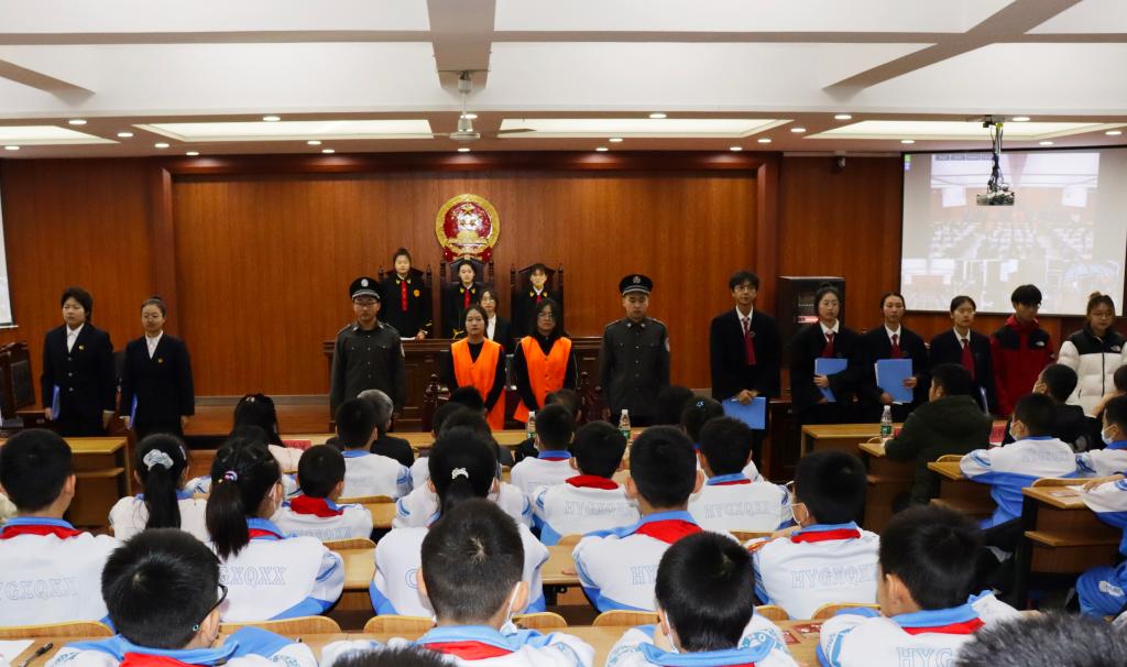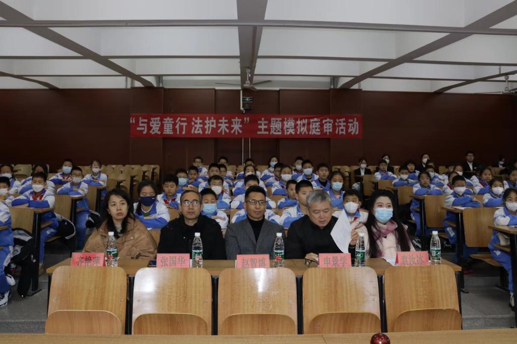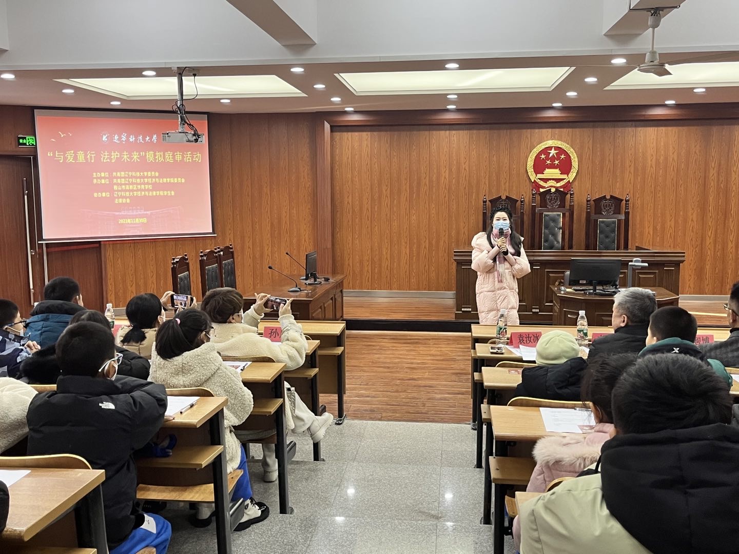 在國家憲法日來臨之際,11月30日,經(jīng)法學院于明德樓A214開展“與愛童行,法護未來”主題模擬庭審展演活動。活動邀請鞍山華育高新區(qū)學校160余名師生走進模擬法庭現(xiàn)場,觀看模擬庭審活動。