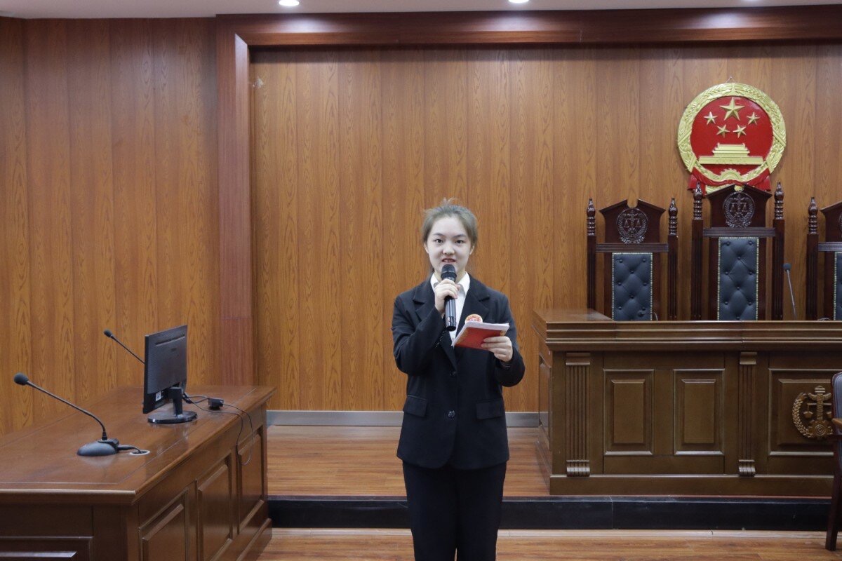 庭審過后,經(jīng)法學院“青年·說”理論宣講團成員孟子園向觀眾介紹了各法庭參與人的職責,并以通俗易懂的語言向大家講解了有關(guān)預(yù)防未成年人犯罪方面的法律知識,讓大家對于法庭的工作職能、體系以及未成年人犯罪相關(guān)法律法規(guī)有了更加深刻的理解與認識。隨后,“鋼花”新時代大學生理論宣講團成員李澤源和大家分享了抗日女英雄趙一曼的光榮事跡,趙一曼堅韌不拔、堅守信念的精神隨著她的講述深深地鼓舞了在場的每一個人。