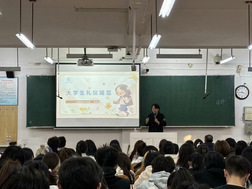 項東方老師主要從四個方面進(jìn)行講述,她指出中國自古以來就是禮儀之邦,作為新時代青年,應(yīng)高度重視日常生活中的禮儀規(guī)范。她結(jié)合實際案例講解禮儀的定義與原則,強(qiáng)調(diào)文明禮儀在校園生活及未來發(fā)展中的重要意義,同時結(jié)合行為規(guī)范和禮儀修養(yǎng)的養(yǎng)成,向同學(xué)們提出三點建議:一是要注重儀容儀表,保持整潔得體。著裝要符合場合要求,不可過于隨意和夸張;二是要注意言談舉止,使用文明用語,做到“站如松,坐如鐘,行如風(fēng)”,塑造有風(fēng)度有內(nèi)涵的個人形象。三是要提升自我修養(yǎng),學(xué)會尊重他人,了解并遵守各種場合的行為規(guī)范,不斷提升自己的禮儀素養(yǎng)。現(xiàn)場氣氛熱烈,學(xué)生們?nèi)褙炞⒌伛雎牪⒎e極參與到討論和互動環(huán)節(jié)。