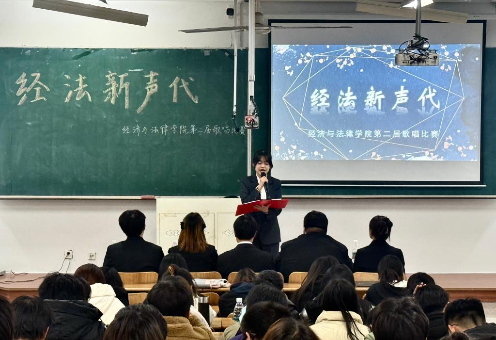 11月28日,經(jīng)法學(xué)院于藝術(shù)館舉辦第二屆“經(jīng)法新聲代”歌唱比賽,經(jīng)法學(xué)院團(tuán)委副書記張鵬飛、學(xué)院團(tuán)委、學(xué)生會(huì)各部門負(fù)責(zé)人以及各學(xué)院學(xué)生會(huì)文化活動(dòng)部負(fù)責(zé)人出席并擔(dān)任評(píng)委,經(jīng)法學(xué)院2024級(jí)全體學(xué)生參加。