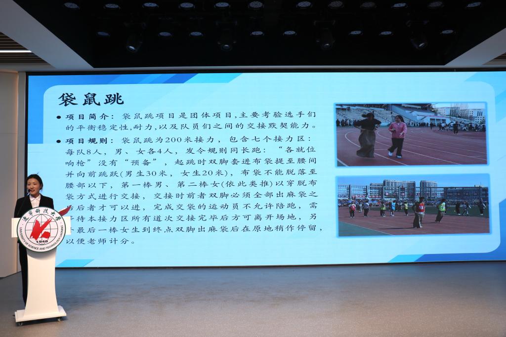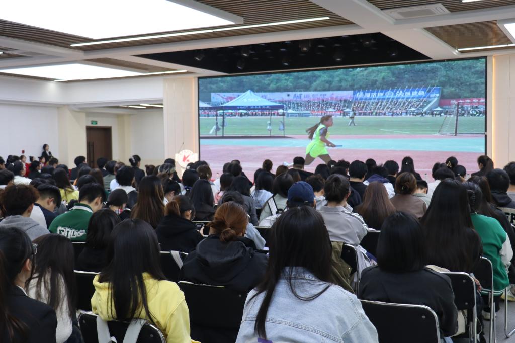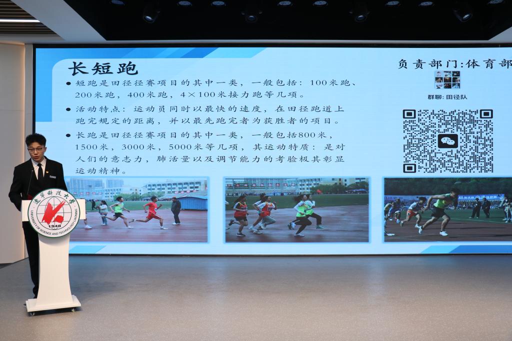 在張鵬飛的帶領下,現場師生共同觀看了經法學院在第52屆運動會中精彩表現的視頻,運動員們矯健的身姿和拼搏的身影,點燃了與會同學心中的激情。重溫高光時刻,同學們深刻感受到體育的魅力和力量。國貿24-2班體育委員趙書白作為運動員代表發言,他表示,經法學院全體運動員在今后的訓練中,定會團結一致、認真刻苦;發揚“更高,更快,更強”精神,在賽場上遵守規則、拼搏奮進;用實際行動詮釋對體育的熱愛,為經法學院的體育事業添磚加瓦,爭取不負眾望,再創佳績。隨后,運動會各項目負責人依次登臺,從項目內容、競賽規則、運動技巧及注意事項等多方面進行詳細介紹,并通過觀看視頻以及現場演示的方式生動地展現了各項目的運動要領,讓同學們對運動會項目有了更直觀的了解,極大地激發了同學們的參與熱情。