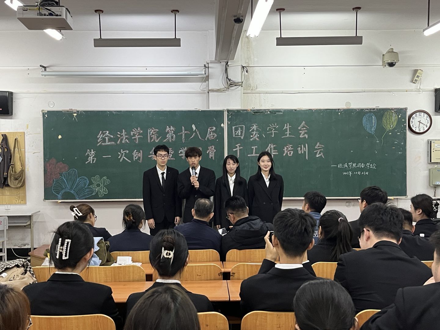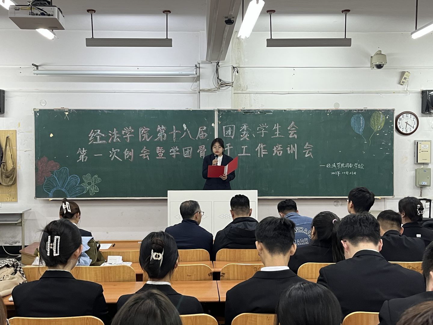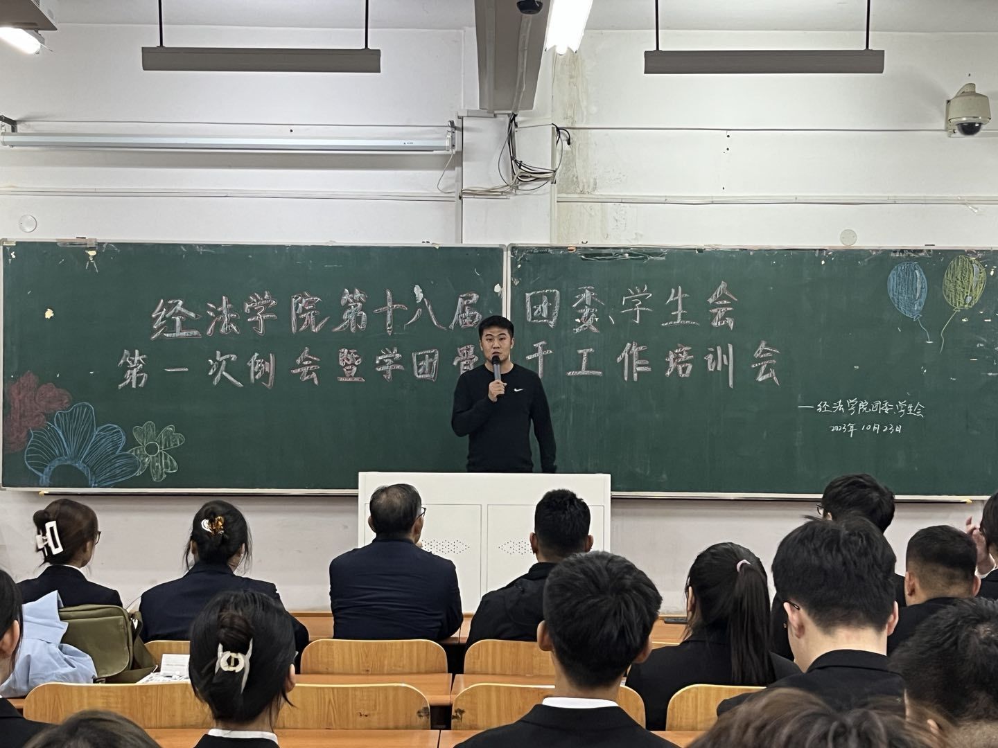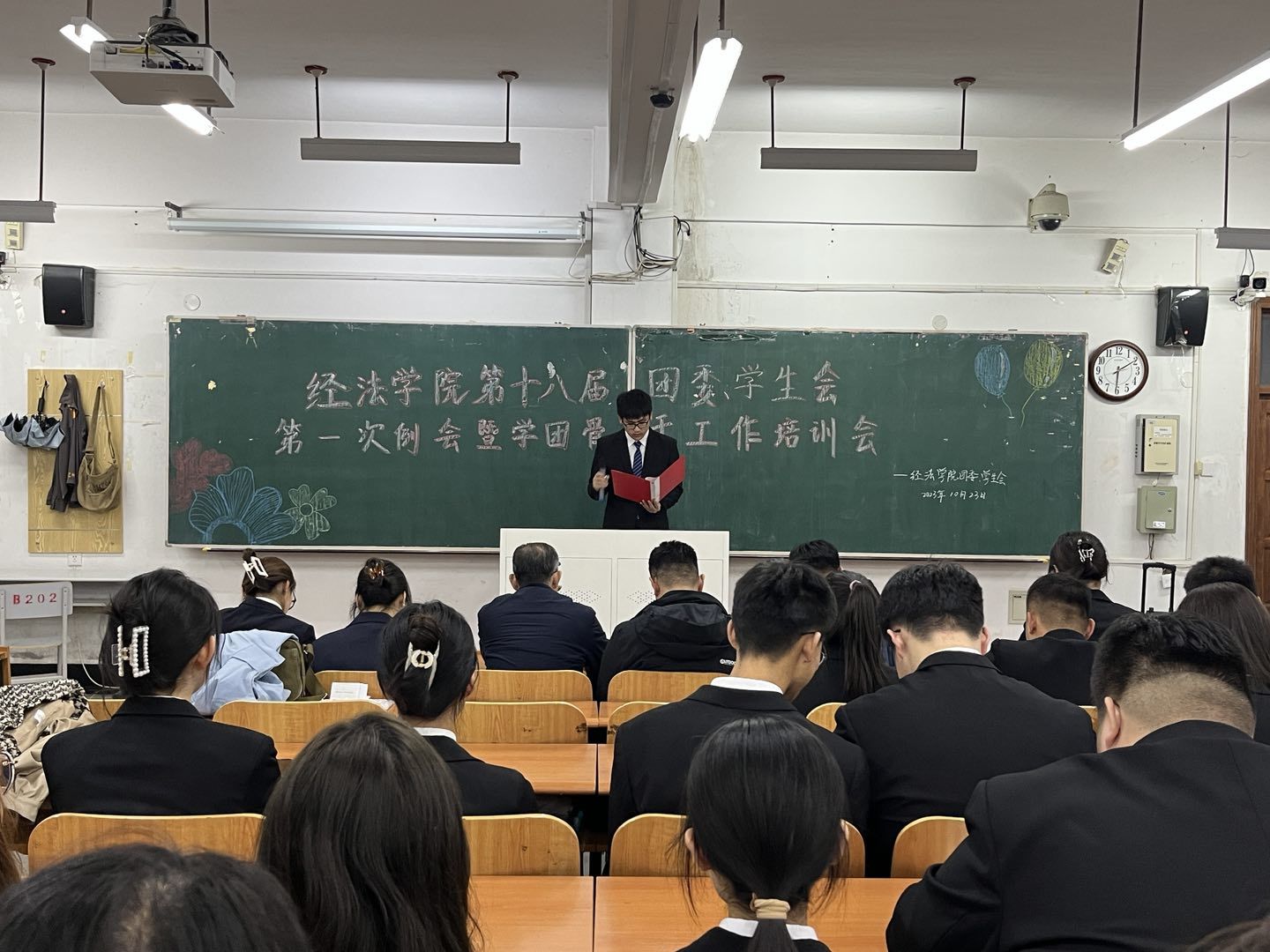 10月23日下午,經(jīng)法學(xué)院第十八屆團(tuán)委、學(xué)生會(huì)第一次例會(huì)暨學(xué)團(tuán)骨干工作培訓(xùn)會(huì)在博學(xué)樓C112舉行。學(xué)院黨委書(shū)記趙智博、黨委副書(shū)記張國(guó)華、團(tuán)委副書(shū)記張鵬飛出席會(huì)議,經(jīng)法學(xué)院學(xué)生會(huì)全體學(xué)團(tuán)骨干參加了本次會(huì)議。會(huì)議由經(jīng)法學(xué)院第十八屆學(xué)生會(huì)執(zhí)行主席兼辦公室負(fù)責(zé)人吳雨純主持。