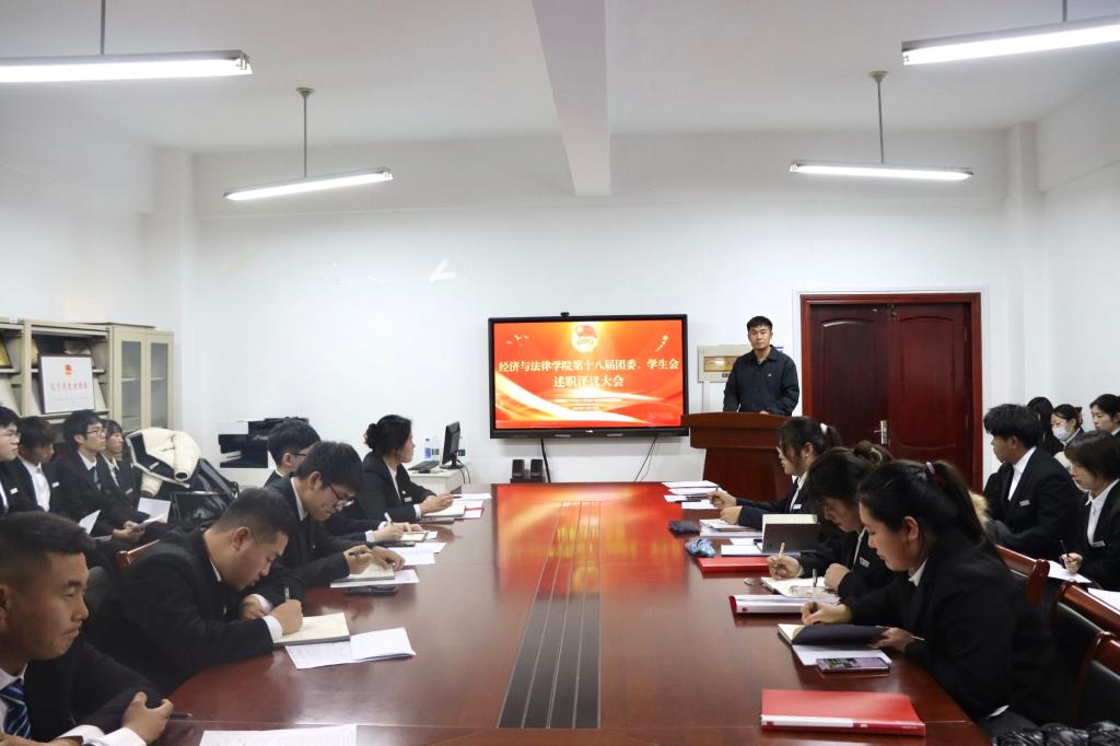12月12日下午,經法學院于博識樓A305召開第十八屆團委、學生會述職評議會,學院團委副書記張鵬飛及全體團學骨干參加了本次會議。會議由學生會執行主席兼辦公室負責人吳雨純主持。