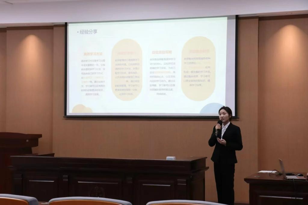 學生會執(zhí)行主席兼辦公室負責人趙心豪等5名學生骨干代表依次上臺發(fā)言,就個人工作心得及學習經驗進行了分享。他們勉勵各位學生骨干積極參與志愿服務、學科競賽、社會實踐等活動,充分發(fā)揮模范帶頭作用。在分享過程中,他們展示了英語四六級的學習資源及成長規(guī)劃,著重強調了平衡學業(yè)和工作之間關系的重要性,為學院優(yōu)良學風的建設奠定了堅實基礎。