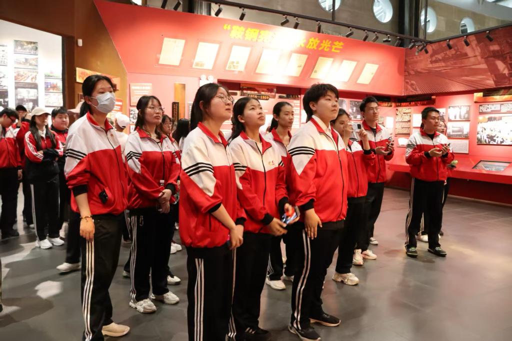 活動當日,師生共同參觀鞍鋼博物館。博物館講解員從館內的巨幅畫雕講起,依次向大家介紹“鋼鐵搖籃”“火紅年代”等11個主題展區,她生動地講述了鞍鋼從建國前在艱難困苦中篳路藍縷、艱苦創業,到逐步成長為國家鋼鐵工業堅實支柱的發展歷程。同學們在參觀過程中,全神貫注地凝視著每一件展品,仔細閱讀著每一段文字說明。同學們從一件件帶著歲月痕跡、略顯斑駁的實物展品,到一幅幅珍貴無比的歷史照片中,真切感受到了鞍鋼人在不同歷史時期所展現的艱苦奮斗、勇于創新的精神品質。
