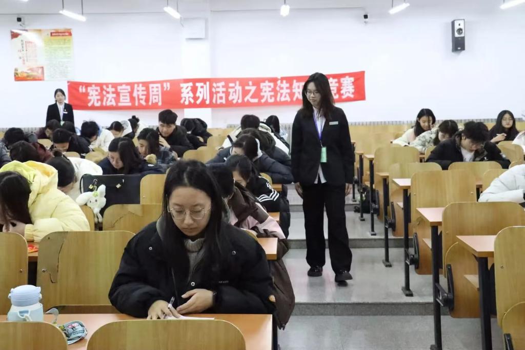 12月4日,經(jīng)法學(xué)院于博學(xué)樓C112開展憲法知識(shí)競賽。學(xué)院學(xué)生會(huì)主席團(tuán)成員許秀、張涵及學(xué)生會(huì)辦公室工作人員擔(dān)任監(jiān)考員,學(xué)院近100名同學(xué)參加了本次競賽。