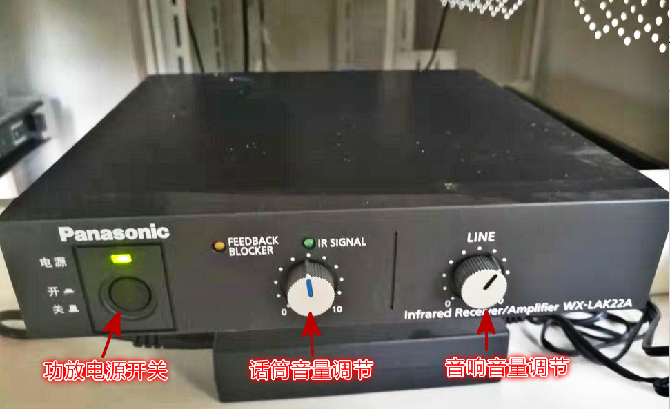 目前我校所有多媒體教室均已安裝松下紅外無線擴音系統,該系統無需對頻,開機即可使用,而且采用紅外線傳輸,無電磁波輻射。原來安裝的2.4G擴聲系統不再使用。