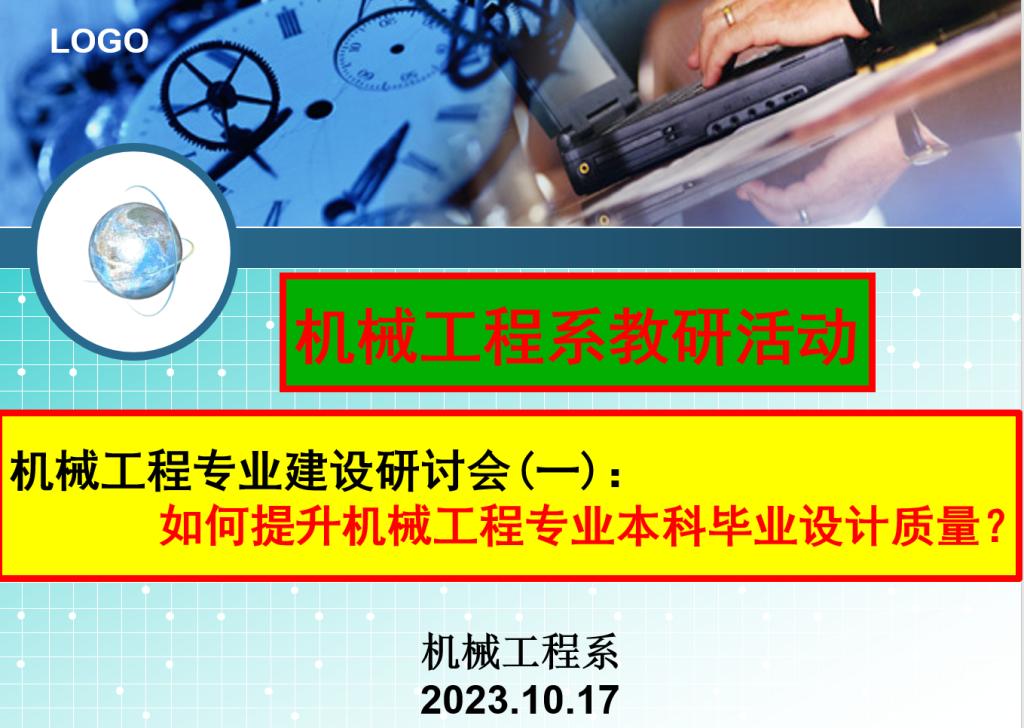 10.17機(jī)械工程系全體教師在明信樓a435進(jìn)行教研活動(dòng)。會(huì)議由系主任李昌主持,主題:機(jī)械工程專業(yè)建設(shè)研討會(huì)(一) 如何提升機(jī)械工程專業(yè)本科畢業(yè)設(shè)計(jì)質(zhì)量?李昌主要圍繞以下四個(gè)方面進(jìn)行了展開(kāi)和解讀1.機(jī)械工程專業(yè)建設(shè)面臨的新形勢(shì)?2.對(duì)本科畢業(yè)設(shè)計(jì)提出的新要求?3.機(jī)設(shè)專業(yè)本科畢業(yè)設(shè)計(jì)架構(gòu)分析?4.如何提升機(jī)械工程專業(yè)畢業(yè)設(shè)計(jì)質(zhì)量?然后由鄧祥偉、劉愛(ài)玲分別針對(duì)機(jī)械工程專業(yè)、過(guò)控專業(yè)畢設(shè)架構(gòu)和特色進(jìn)行了解讀,最后所有老師發(fā)言討論,發(fā)表自己對(duì)專業(yè)合并后畢設(shè)的看法,趙院長(zhǎng)針對(duì)大家的發(fā)言進(jìn)行了梳理和引導(dǎo)性總結(jié)。本次會(huì)議是成功的大會(huì),直面大家心中的疑惑,暢所欲言,為未來(lái)專業(yè)建設(shè)奠定重要基礎(chǔ)。