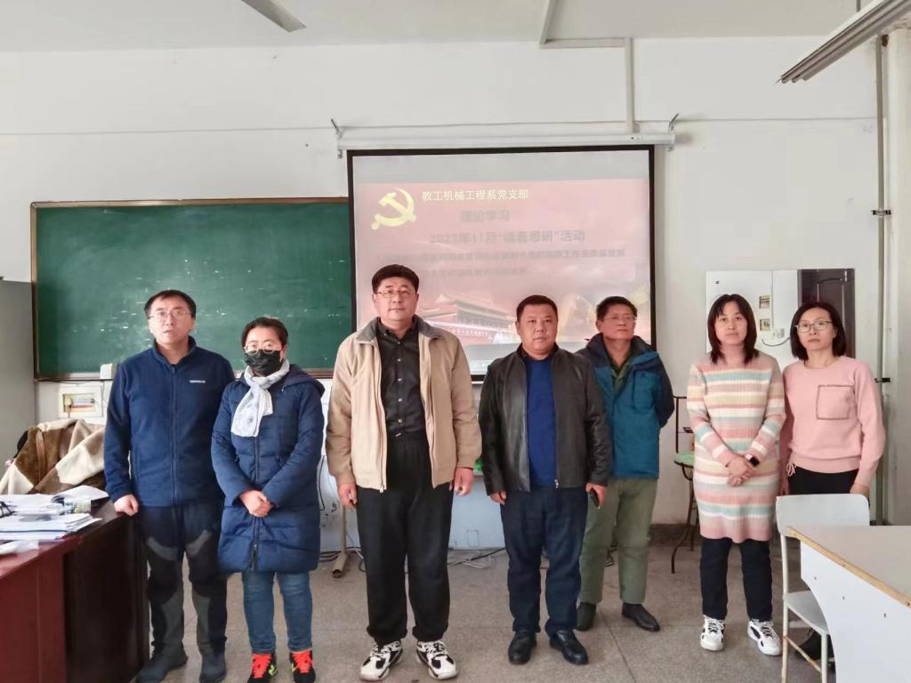 機械學院教工機工系黨支部成立于2021年,現有黨員8人。包括教授2人,副教授1人,講師5人,其中有博士3人。支部委員會由黨支部書記、組織委員、宣傳委員、紀檢委員4人組成。