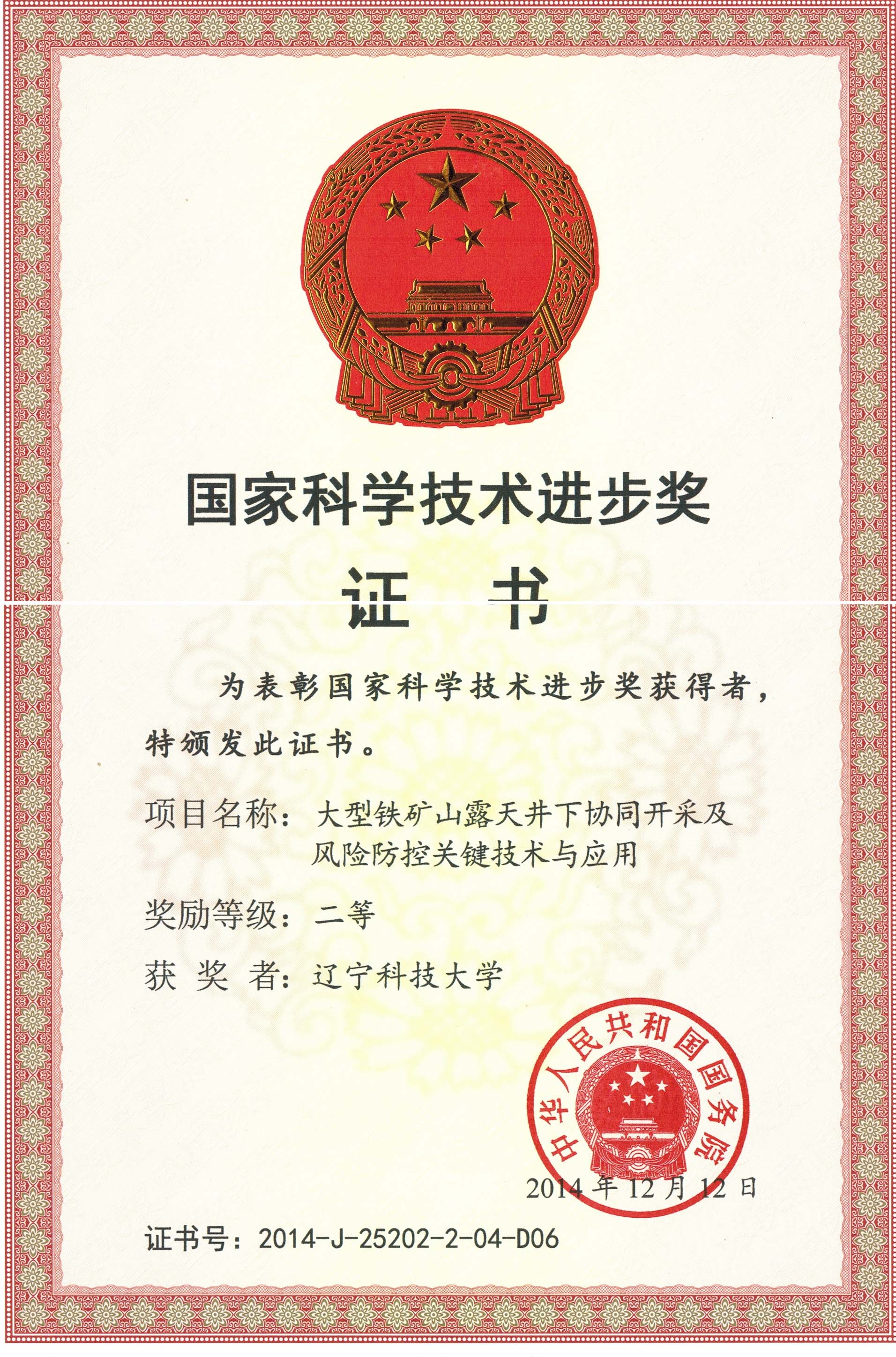 2014年采礦工程-國家科技進步獎(大型鐵礦山露天井下協同開采及風險防控關鍵技術與應用)