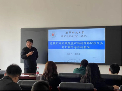 采礦及安全方向同學(xué)們的報(bào)告涵蓋了采礦方法、礦山通風(fēng)、充填體熱穩(wěn)定性等研究內(nèi)容;礦加方向同學(xué)匯報(bào)了有色金屬硫化礦氧化浮選、礦物材料機(jī)械力化學(xué)研究、鐵尾礦回收利用、礦石選別藥劑研究進(jìn)展等內(nèi)容。研究生們在會上積極相互交流,在感受科學(xué)研究魅力的同時(shí),也拓寬了同學(xué)們的學(xué)術(shù)視野。
