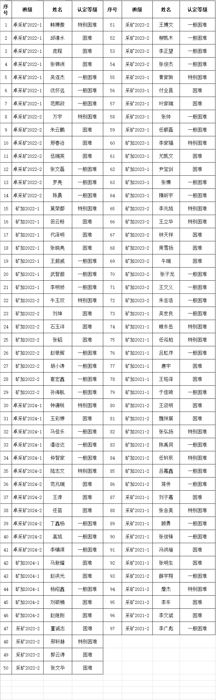 經學生本人申請,班級評議小組評議,學院資助認定工作組審核,現對2024-2025學年家庭經濟困難學生認定結果予以公示: