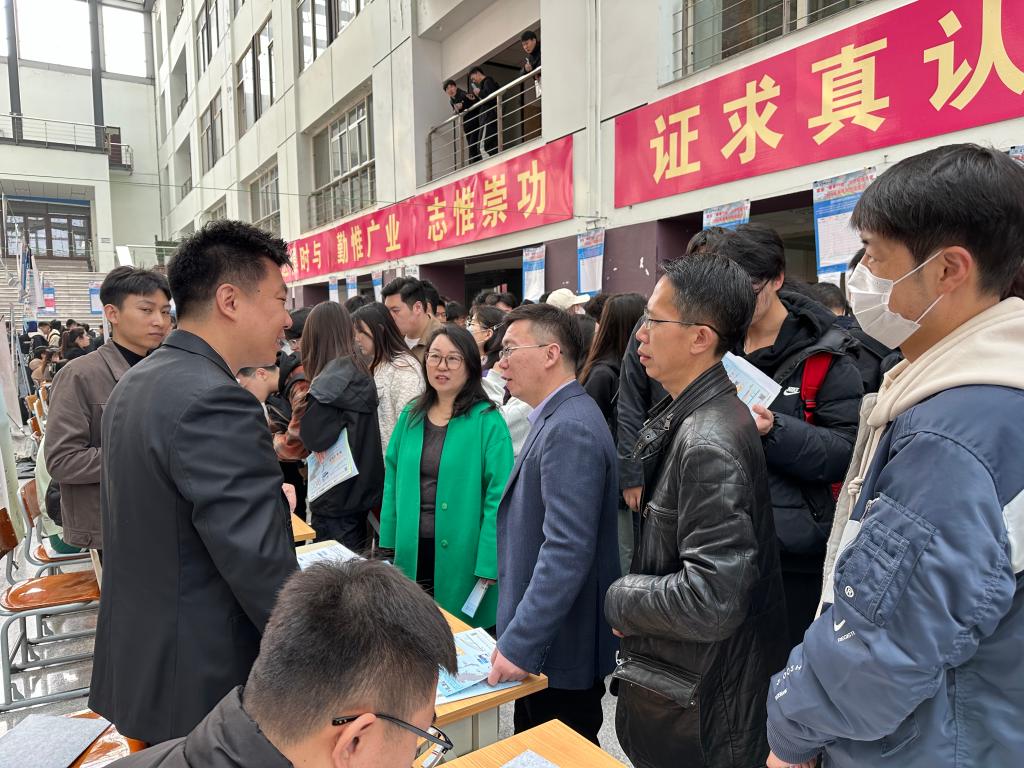 3月23日,遼科大2024屆畢業生春季校園招聘會在明德樓舉辦。為了深入了解本次春季校園招聘會的信息,促進理學院畢業生順利就業,理學院領導班子,系主任和輔導員老師到達現場與各企業單位進行交流,助力畢業生順利就業。