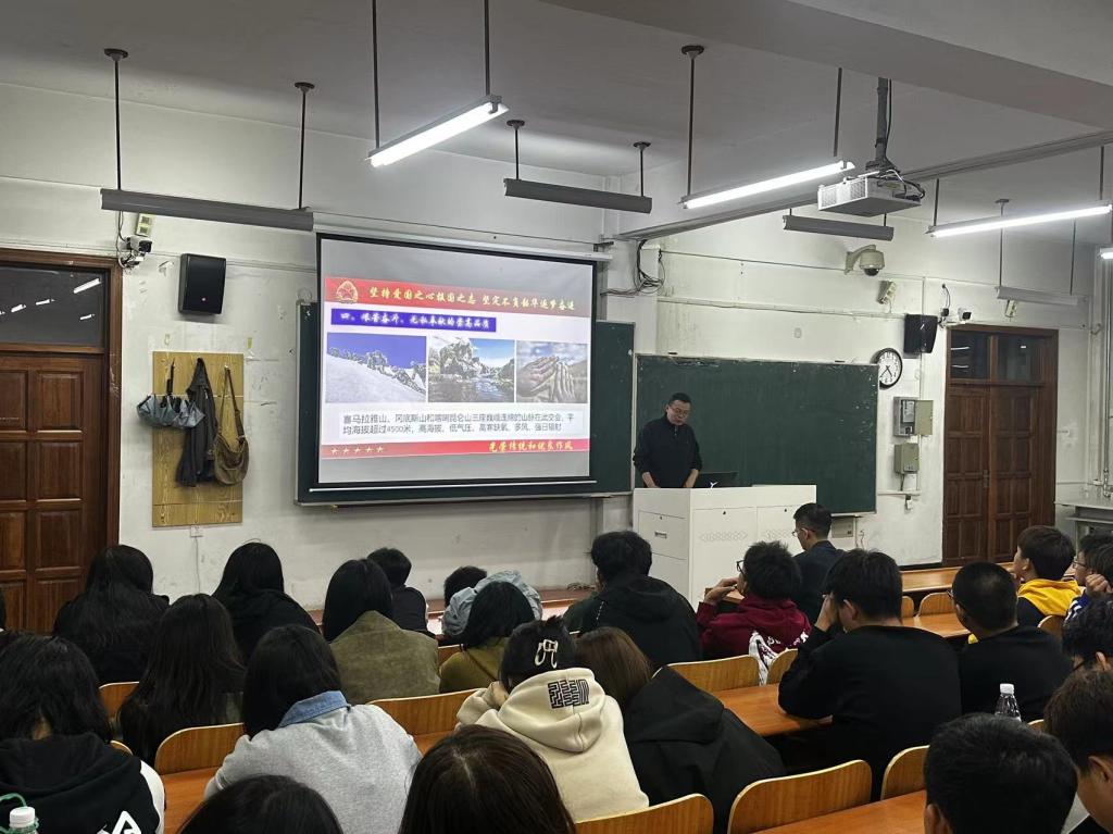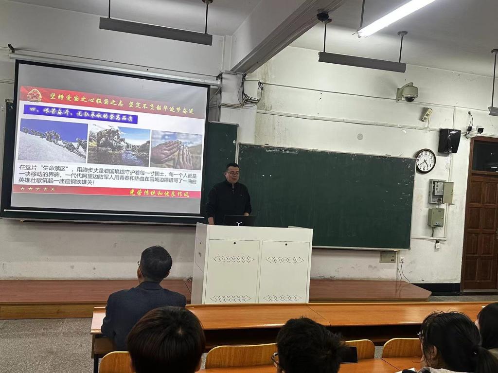 為響應學校關工委號召,按照工作安排,理學院關工委特邀請鞍山第二干休所、政治部負責人倪龍廷主任于10月24日在博學樓C112教室召開主題為“堅持愛國之心報國之志 堅定不負韶華逐夢奮進”的報告,報告圍繞國防教育認識,軍隊光榮傳統和青年學子使命擔當等三個方面展開,黨委副書記侯立臣,理學院學生黨員及2023級全體學生參加此次報告會,院團委書記宋薇老師主持會議。