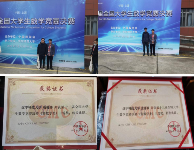 近日,在上海華東師范大學承辦的第十三屆全國大學生數學競賽決賽成績揭曉。我校應用物理18級學生楊健偉、應用化學19級學生張澤政均榮獲第十三屆全國大學生數學競賽決賽(非數學類)三等獎。