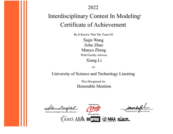 2022年2月18日,在教務處、理學院精心組織下,我校共有來自全校不同學院的將近百名學生組成了56支代表隊參賽。在李響等競賽經驗豐富的老師悉心指導下,經過4天連續奮戰,榮獲二等獎2項,三等獎23項。