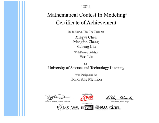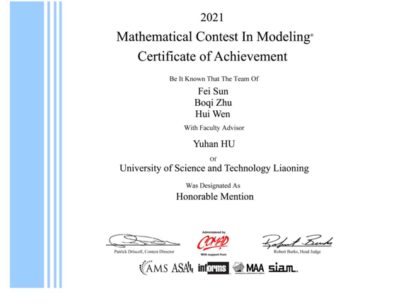 2021年2月5日,在教務處、理學院精心組織下,我校共有來自全校不同學院的將近百名學生組成了30支代表隊參賽。其中在劉昊等競賽經驗豐富的教師悉心指導下,經過4天連續奮戰,榮獲二等獎1項,三等獎24項。