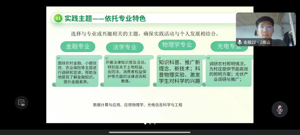 理學院7月27日至8月10日通過騰訊會議相繼召開了暑假“三下鄉”社會實踐活動動員和培訓會,會議由社團服務中心負責人趙思萌主持召開,學院團委書記宋薇老師以及各隊伍負責人和社團服務中心成員參加會議,同時還邀請了經法學院的高山同學進行經驗分享。