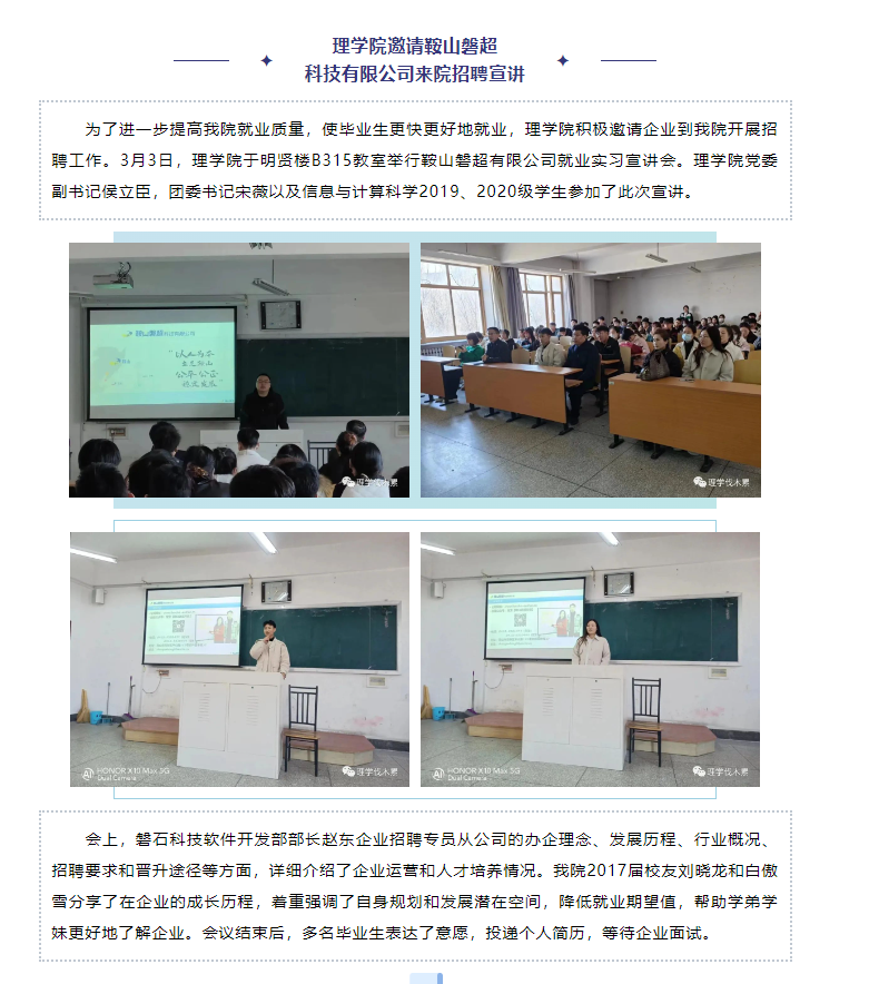 理學院邀請2017屆校友劉曉龍和白傲雪作報告
