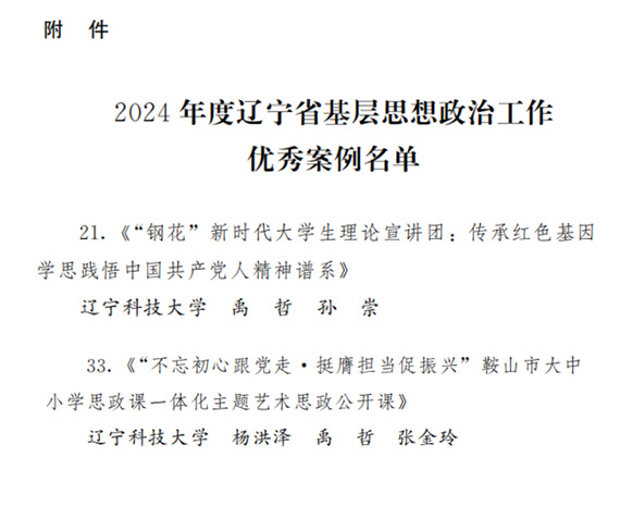 遼科大2個項目入選遼寧省基層思想政治工作優(yōu)秀案例
