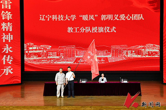 “暖風”郭明義愛心團隊教工分隊成立儀式上,郭明義為教工分隊授旗。教工分隊李世新代表全體成員發(fā)言。他說:“‘暖風’郭明義愛心團隊教工分隊的成立是責任,更是承諾。我們將以愛心為紐帶,攜手共進,以師者微光,照亮學子前程,以實踐注釋擔當,踐行新時代雷鋒精神。”