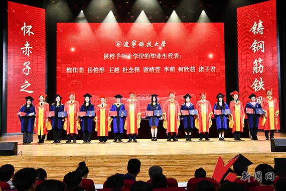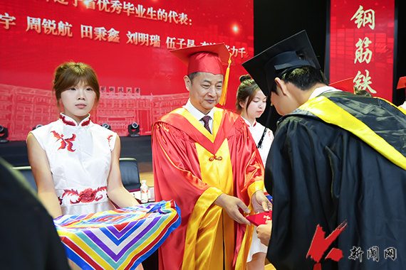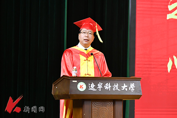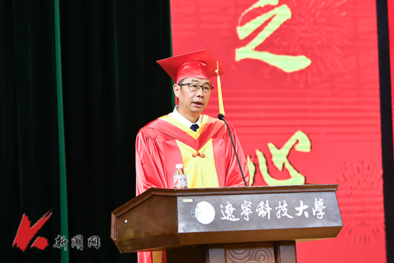 胡軍代表全校師生員工向即將揚帆起航的全體畢業生致以熱烈的祝賀。胡軍說,幾年前,你們選擇了遼科大這座鑄就夢想的熔爐,在這里學習知識、磨礪意志、結交朋友、塑造自我;你們把最美好的青春留在了這里,用勤勉與智慧在青春答卷上鐫刻了屬于遼科大人的時代印記。臨別在即,胡軍勉勵畢業生們要牢記“打鐵還需自身硬”的人生哲理,并向大家提出三點期許。