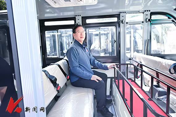 遼科大校長胡軍檢查校園電動擺渡車驗收情況并指導(dǎo)工作