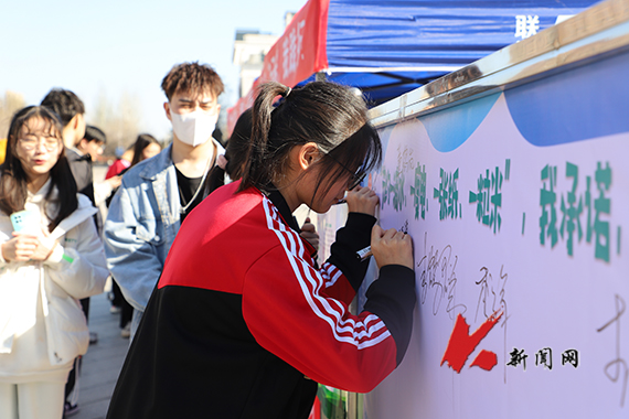 3月3日,博雅廣場春日融融,“四個一”活動現場吸引了眾多過往同學,大家駐足停留,認真了解活動情況,踴躍在“節約一滴水、一度電、一張紙、一粒米”簽名墻上簽名,通過易班App參與“我承諾”打卡。同學們紛紛表示,“我承諾,我踐行”,要將學雷鋒融入日常,化作經常,做在平常,踐行雷鋒精神,做文明大學生。