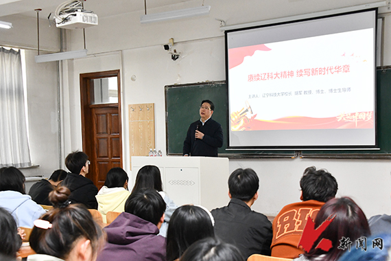 3月20日,遼寧科技大學黨委副書記、校長胡軍在博學樓C208教室,以《賡續遼科大精神 續寫新時代華章》為題,為建環2022級1班、2班,道橋2022級2班大學生上了一堂精彩的思想政治理論課。