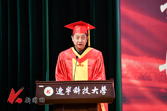 胡軍代表學(xué)校向771名圓滿完成學(xué)業(yè)的畢業(yè)生致以熱烈的祝賀,向孜孜不倦的教師致以最誠摯的敬意,向無私奉獻(xiàn)的家人和朋友們表示最衷心的感謝。他深情回顧了同學(xué)們和學(xué)校共同奮斗、共同成長的過程,表達(dá)了對(duì)同學(xué)們的依依不舍之情。臨別之際,胡軍向畢業(yè)生們提出三點(diǎn)希望:一是希望同學(xué)們堅(jiān)定理想信念,爭當(dāng)肩負(fù)時(shí)代重任的復(fù)興棟梁。要胸懷“國之大者”,擔(dān)當(dāng)使命任務(wù),到新時(shí)代新天地中去施展抱負(fù)、建功立業(yè),為祖國建設(shè)添磚加瓦,為民族復(fù)興鋪路架橋,讓青春在祖國和人民最需要的地方綻放絢麗之花。二是希望同學(xué)們秉承創(chuàng)新精神,爭當(dāng)無愧時(shí)代使命的強(qiáng)國先鋒。要能夠勇?lián)鷷r(shí)代使命,自信自立自強(qiáng),永葆創(chuàng)新熱情,作為具有創(chuàng)新精神和實(shí)踐能力的時(shí)代新人,用自己的熠熠星光和青春力量,建設(shè)更加美好的中國。三是希望同學(xué)們永葆實(shí)干姿態(tài),爭當(dāng)勇立時(shí)代潮頭的中堅(jiān)力量。要始終秉承“勤奮 向上 求實(shí) 創(chuàng)新”的遼科大校風(fēng),在自己的嶄新征途上爭朝夕、積跬步、致千里,在各自崗位上作出不凡貢獻(xiàn),在不懈奮斗中實(shí)現(xiàn)人生價(jià)值,與祖國同心同夢(mèng)、與時(shí)代同向同行,鑄就于國有價(jià)值、于校有光榮、于己有精彩的絢麗人生。