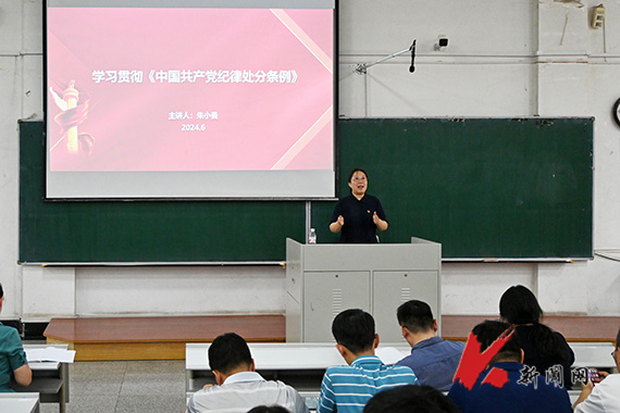 校機(jī)關(guān)、科技園、國(guó)際教育學(xué)院、繼續(xù)教育學(xué)院全體教工黨員在博學(xué)樓C302會(huì)場(chǎng)參加學(xué)習(xí)。學(xué)校黨紀(jì)學(xué)習(xí)教育宣講團(tuán)成員、馬克思主義學(xué)院副院長(zhǎng)陳燁作專(zhuān)題宣講報(bào)告。