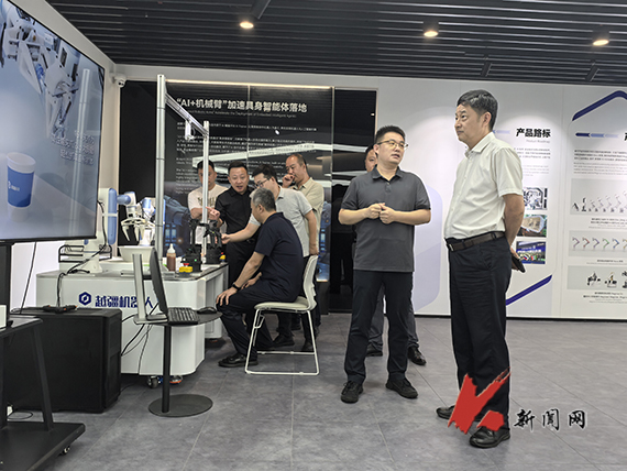越疆公司教育事業部總經理李曉亮陪同李勝利參觀企業,并對公司智能協作機器人產品進行詳細介紹。李勝利從功能、性能、應用領域系統解決方案等角度詳詢相關信息,對企業在智能協作機器人領域以核心技術創新驅動發展方面取得的成果高度贊賞,并對企業在產學合作協同育人方面的措施與成效進行了重點了解。