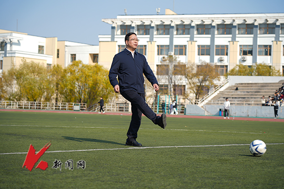 遼科大校長胡軍為“校長杯”足球賽決賽開球
