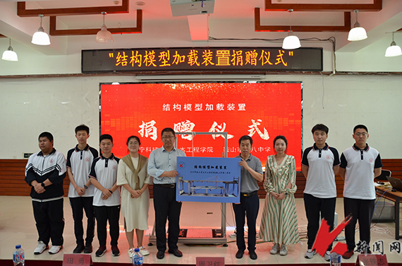 在校史館宣講員的帶領下,八中師生了解了遼科大從1948年建校至今的光輝歷程,切身感受遼科大厚重的歷史積淀、豐碩的辦學成果。交流中,土木學院院長周衛(wèi)紅向來訪師生介紹了學院簡況、專業(yè)特色和亮點、學院招生政策等。交流后,第八中學師生代表到大學生活動中心參加土木學院科技活動周活動,現(xiàn)場觀摩遼科大2024年結構設計競賽決賽,活動圍繞“弘揚科學家精神 激發(fā)全社會創(chuàng)新活動”主題,對學生如何開展科研訓練、社團活動等方面進行深入探討。周衛(wèi)紅代表學院向鞍山市第八中學捐贈結構模型加載裝置。