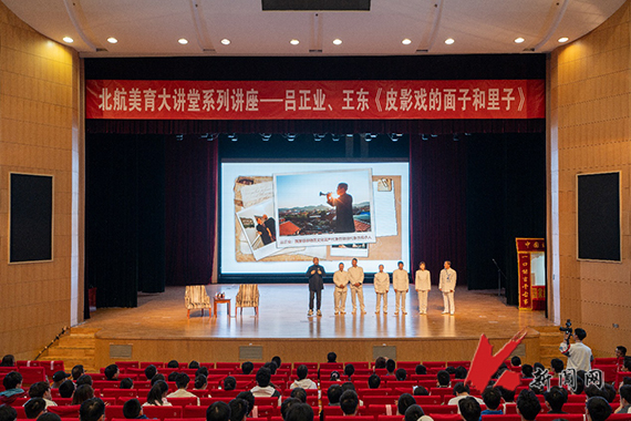 10月16日—17日,遼寧科技大學建筑與藝術設計學院美育教育中心主任、岫巖皮影戲第六代傳承人王東,國家級非物質文化遺產代表性項目代表性傳承人呂正業受北京航空航天大學美育中心邀請,分別在北航沙河校區詠曼劇場和學院路校區晨興音樂廳,為師生作“皮影戲的面子和里子——岫巖皮影戲”美育主題報告,兩校區師生1200余人聽報告。