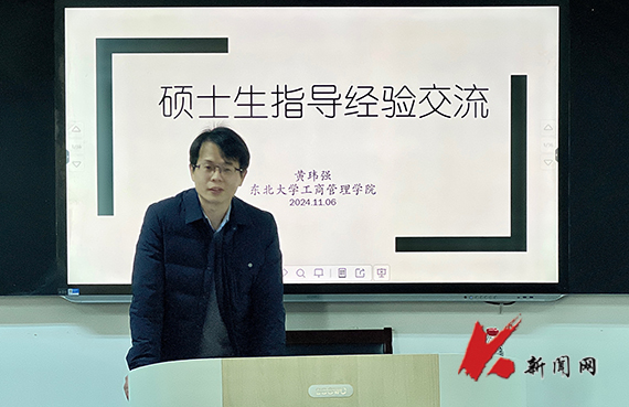 報告中,黃瑋強從研究生指導(dǎo)總體情況、碩士研究生指導(dǎo)環(huán)節(jié)及實施安排、各指導(dǎo)環(huán)節(jié)的具體做法、指導(dǎo)體會四個方面進(jìn)行詳細(xì)闡述。他以2024年研討計劃安排為例,介紹了每周研討的具體開展情況。他說,研究生導(dǎo)師應(yīng)定期關(guān)注研究生研究進(jìn)展,抓好論文共性問題的警示,切實解決研究生在研究過程中存在的各類問題。同時,他還結(jié)合MBA學(xué)生的學(xué)習(xí)特點,著重介紹了指導(dǎo)MBA學(xué)員的相關(guān)經(jīng)驗。會后,導(dǎo)師們就研究生指導(dǎo)的一些困惑和問題與黃瑋強進(jìn)行了提問交流。