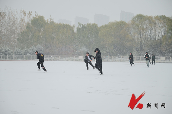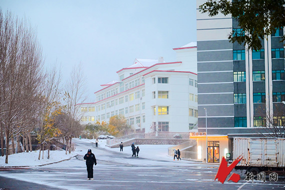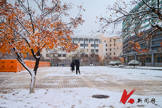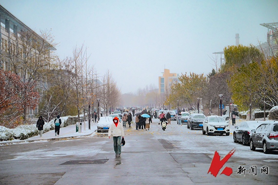 滿天的雪花靜靜落下,時(shí)間仿若在風(fēng)中靜止,校園中的一切猶如一張潔白畫布,師生被定格于此,無意間成為畫中的主角。