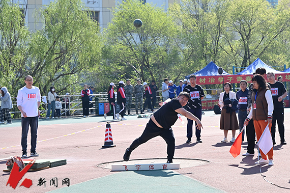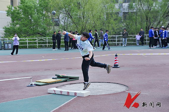站定、執球、回身彎腰,鉛球擲出,這顆小小的球體寄托著青年學子拼搏向前的希望。