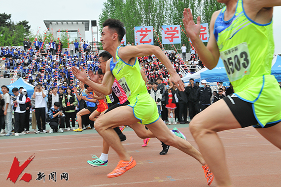 槍響,令發,運動員們聞聲而動,場上展開了激烈的角逐。運動員們步履如飛,快如閃電向著終點疾馳而去。