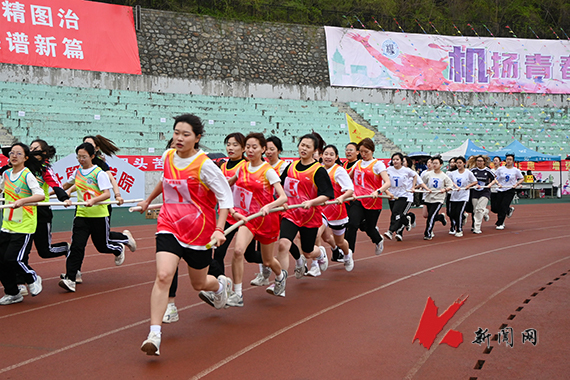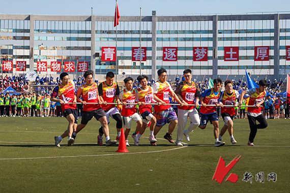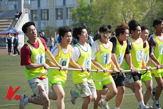 緊握著長(zhǎng)桿,咬緊牙關(guān),繞樁奔跑,盡力沖刺,吶喊著前進(jìn)的口號(hào),他們攜手共進(jìn)。