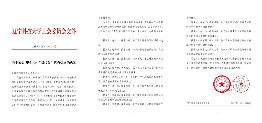 學院工會推報的2項代表提案獲學校四屆一次“雙代會”優秀提案