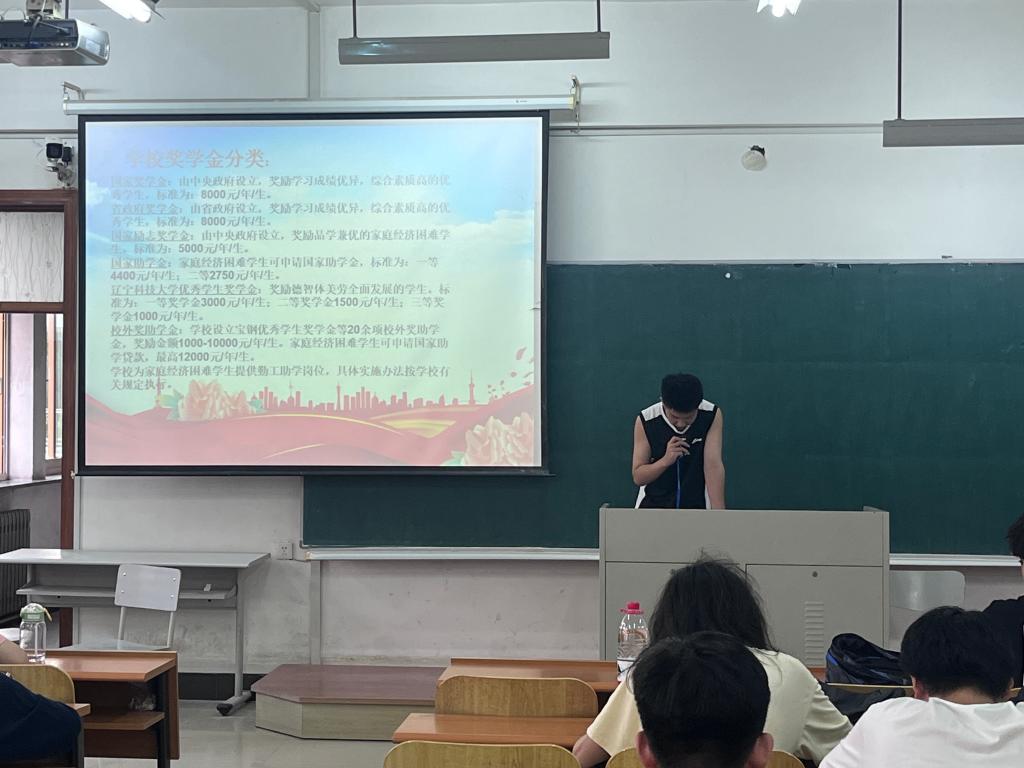 在“筑誠信之基 建時代新功”主題班會中,曾獲得校三等獎學金的樊森同學給大家介紹各項獎學金獲得條件及獲得金額,他激勵同學們“業精于勤荒于嬉,行成于思毀于隨”,同學們要刻苦學習,努力爭取獎學金。